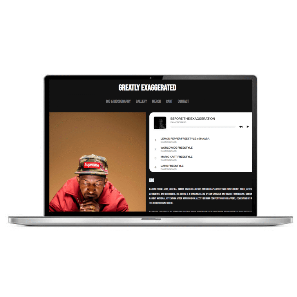Obinna brought my vision to life with Damongrass.com. As an artist, I needed a website that felt true to my style and connected me with fans. He nailed it — the site is clean, fast, and makes it easy for people to discover my music and story. Obinna is professional, creative, and he really gets what artists need. – Damilare (Rap Artist DamonGrass.Com)